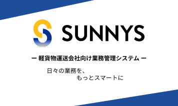 NEWS 新サービス『SUNNYS』リリースのお知らせ この度弊社は、軽貨物運送事業者様向けの業務管理システム『SUNNYS』を、2026年2月1日にリリースしました。 本サービスおよびシステムの詳細については、こちらからご確認ください。なお、本サービスにご興味のある方は、サービス紹介ページより... 2026.02.01 NEWS